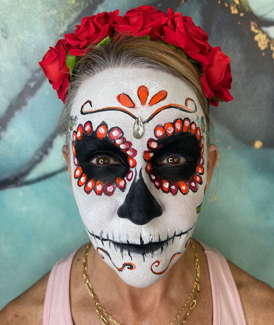 Glam and Gore we do it all! Including SPFX! From hairy wolves, witches, Dia De Los Muerto sugar skulls, creepy skeletons, devils, cats, Freddy Cougar, vampires and more, you name it we can create it!
