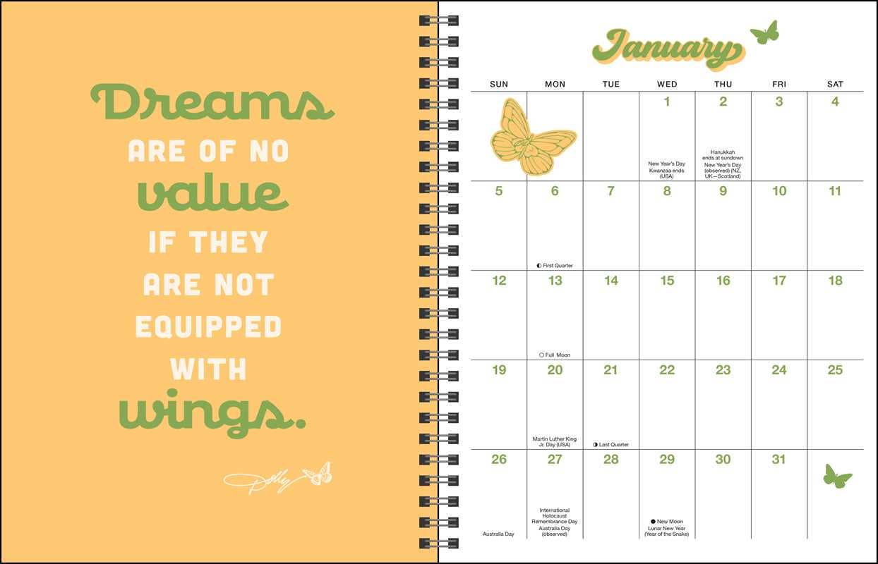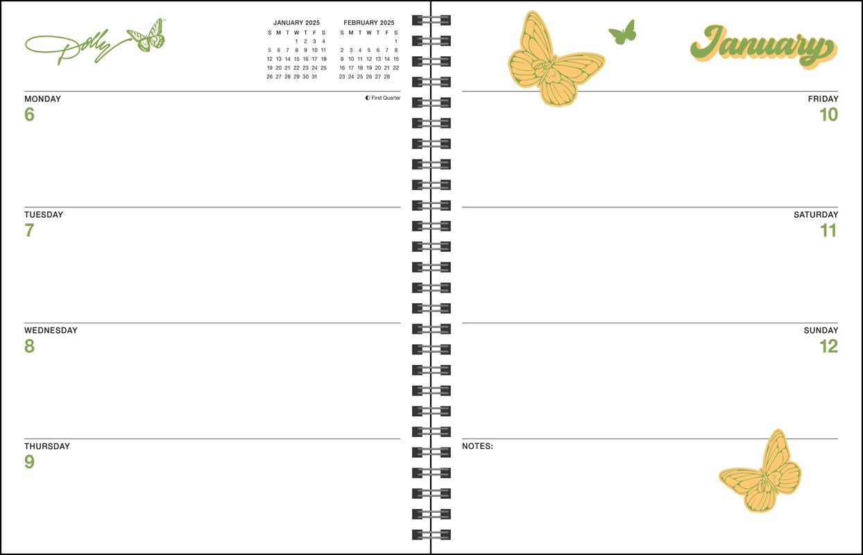 Get your “Dolly” on with this super-hip, brightly-colored monthly/weekly planner that will keep you feeling groovy and motivated throughout the entire year. The Dollyisms 2025 Monthly/Weekly Planner is perfect for keeping months and weeks organized. This one-of-a-kind retro planner has plenty of space to jot down appointments, meetings, and activities. It features twelve of her unique Dollyisms that are guaranteed to inspire, motivate, and bring fun into your year.