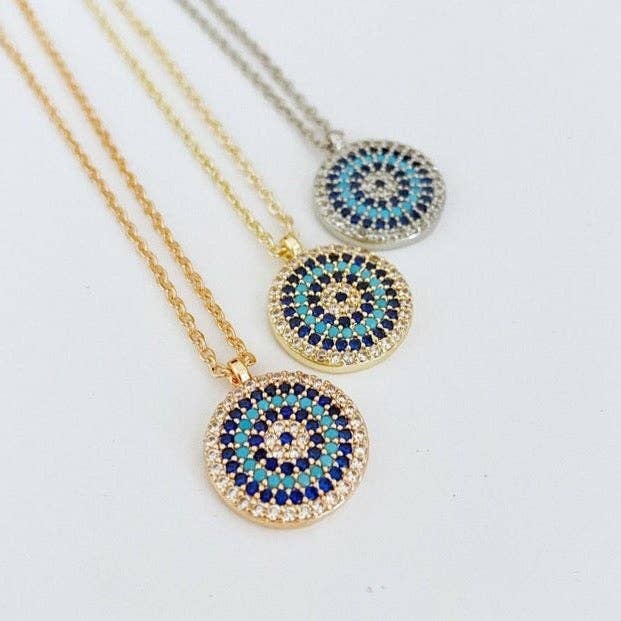 Elegant Evil Eye Necklace with Zircon. Greek Evil Eye for protection Zircon Charm
