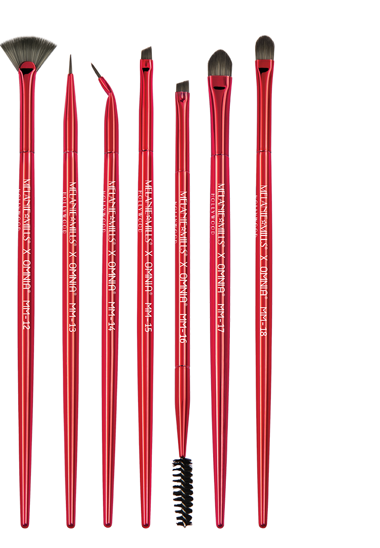 The Melanie Mills Hollywood x Omnia® Precision Collection (MM11–MM18) is a curated set of eight ultra-refined brushes designed for crisp detail work and perfected artistry. Built with Omnia’s exclusive OmniLux™ synthetic filaments, these brushes mimic the performance of natural hair while maintaining superior softness, durability, and seamless product pickup.