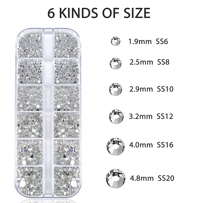 The flat back rhinestones round set can not only decorate your nails but also be used in many projects, such as mobile phone cases, clothing, furniture, shoes, glasses, guitar, tablet computers, wedding dresses, eye makeup, car decoration, etc. So do not let your imagination limit you!
