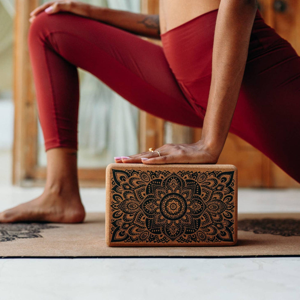 Cork Yoga Block Mandala Black Strength, Flexibility, and Earth-Friendly Bliss
